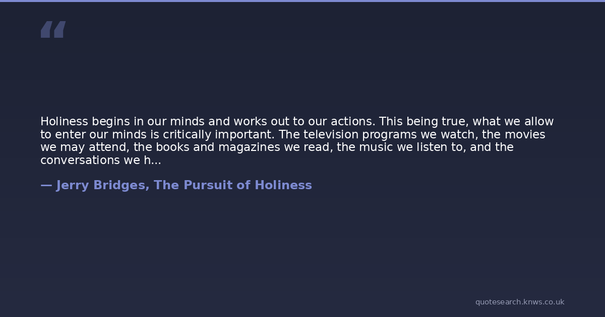 Holiness begins in our minds and works out to our actions. This being true, what we allow to enter our minds is critically important. The television programs we watch, the movies we may attend, the books and magazines we read, the music we listen to, and the conversations we have all affect our minds.