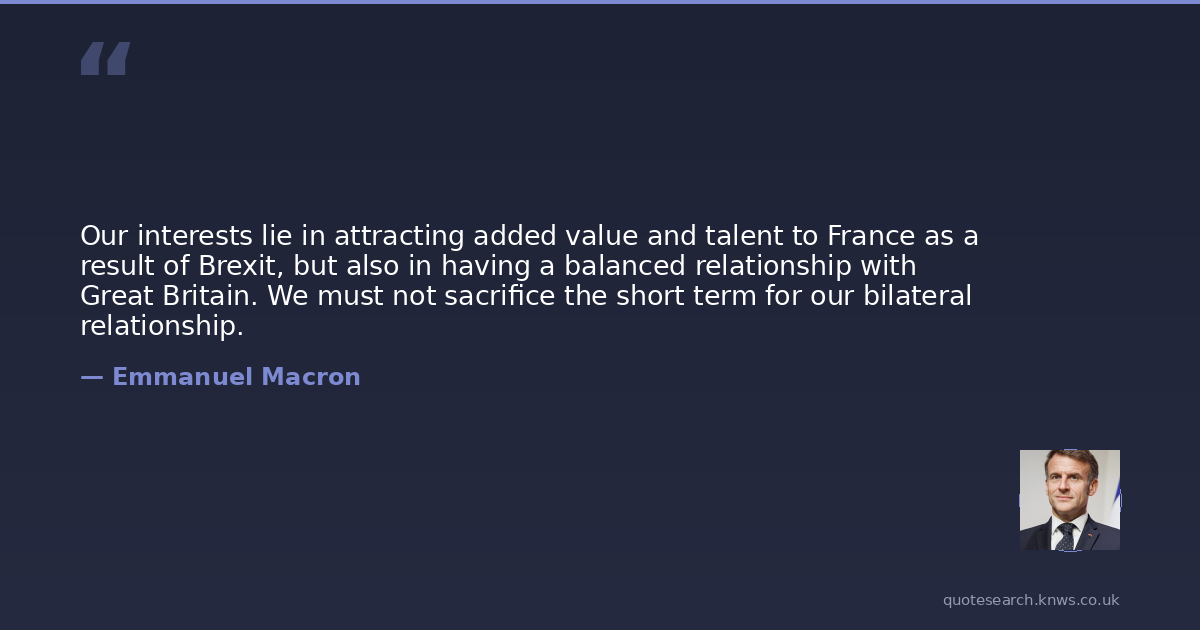 Our interests lie in attracting added value and talent to France as a result of Brexit, but also in having a balanced relationship with Great Britain. We must not sacrifice the short term for our bilateral relationship.