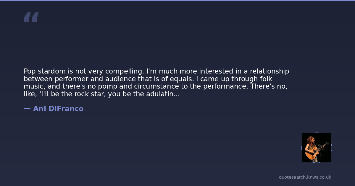 Pop stardom is not very compelling. I'm much more interested in a relationship between performer and audience that is of equals. I came up through folk music, and there's no pomp and circumstance to the performance. There's no, like, 'I'll be the rock star, you be the adulating fan.'