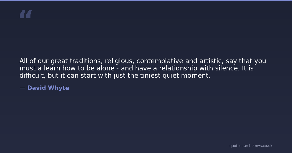All of our great traditions, religious, contemplative and artistic, say that you must a learn how to be alone - and have a relationship with silence. It is difficult, but it can start with just the tiniest quiet moment.