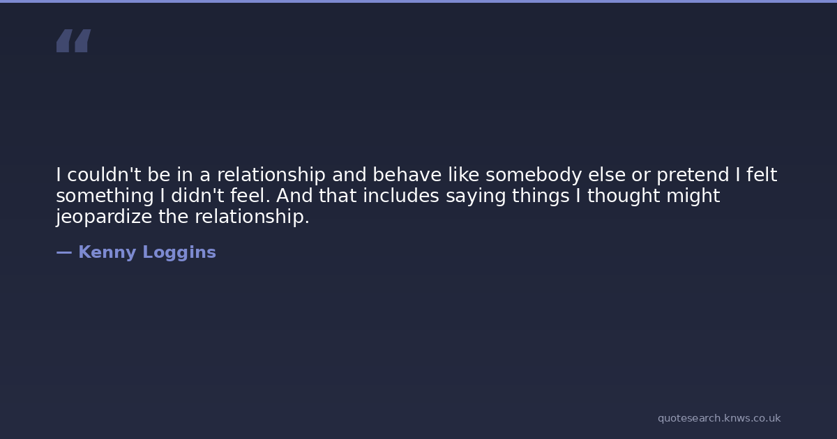 I couldn't be in a relationship and behave like somebody else or pretend I felt something I didn't feel. And that includes saying things I thought might jeopardize the relationship.