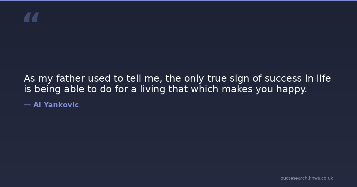 As my father used to tell me, the only true sign of success in life is being able to do for a living that which makes you happy.