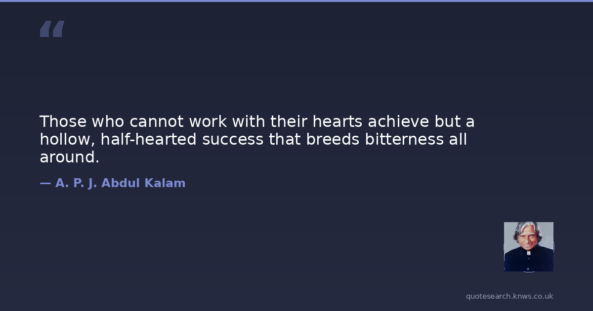 Those who cannot work with their hearts achieve but a hollow, half-hearted success that breeds bitterness all around.
