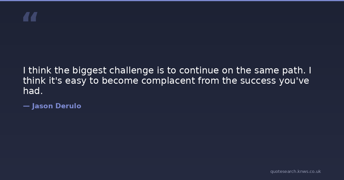 I think the biggest challenge is to continue on the same path. I think it's easy to become complacent from the success you've had.