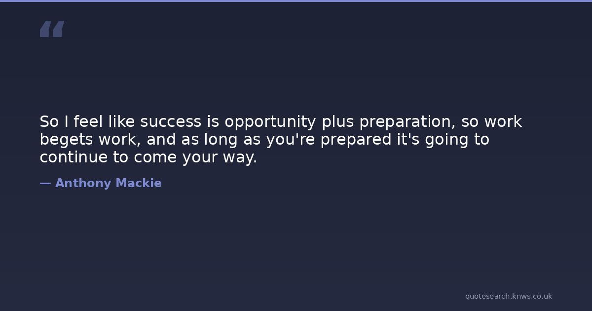 So I feel like success is opportunity plus preparation, so work begets work, and as long as you're prepared it's going to continue to come your way.