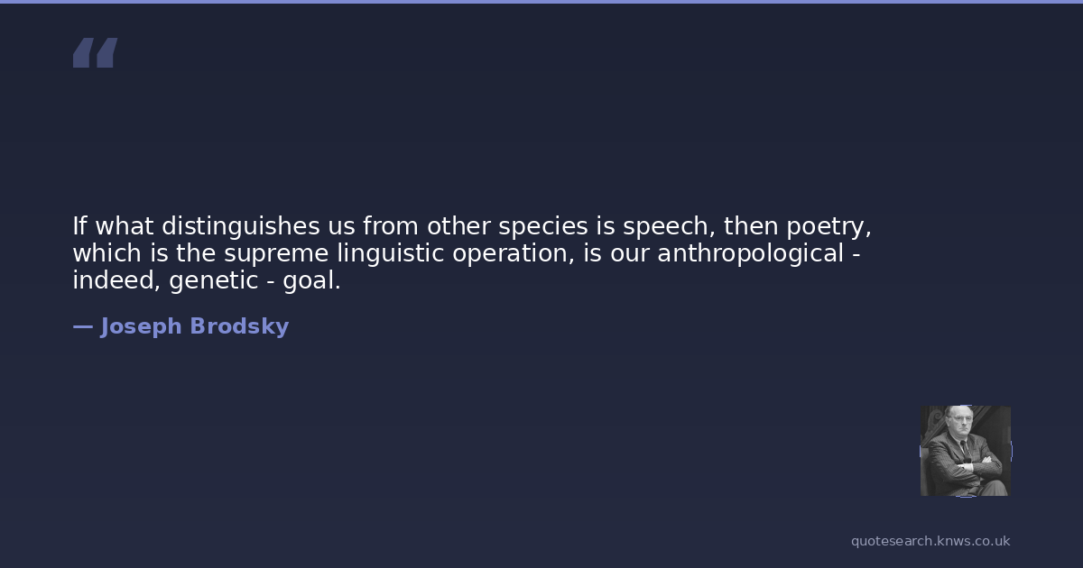 If what distinguishes us from other species is speech, then poetry, which is the supreme linguistic operation, is our anthropological - indeed, genetic - goal.