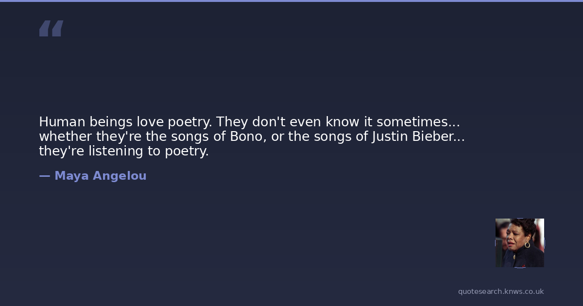 Human beings love poetry. They don't even know it sometimes... whether they're the songs of Bono, or the songs of Justin Bieber... they're listening to poetry.