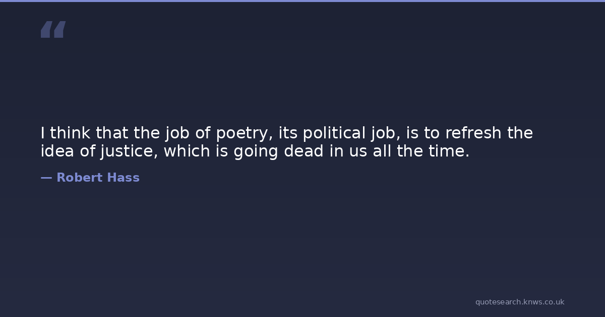 I think that the job of poetry, its political job, is to refresh the idea of justice, which is going dead in us all the time.