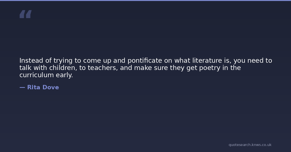 Instead of trying to come up and pontificate on what literature is, you need to talk with children, to teachers, and make sure they get poetry in the curriculum early.