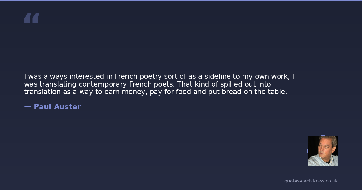 I was always interested in French poetry sort of as a sideline to my own work, I was translating contemporary French poets. That kind of spilled out into translation as a way to earn money, pay for food and put bread on the table.