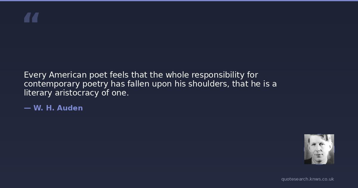 Every American poet feels that the whole responsibility for contemporary poetry has fallen upon his shoulders, that he is a literary aristocracy of one.