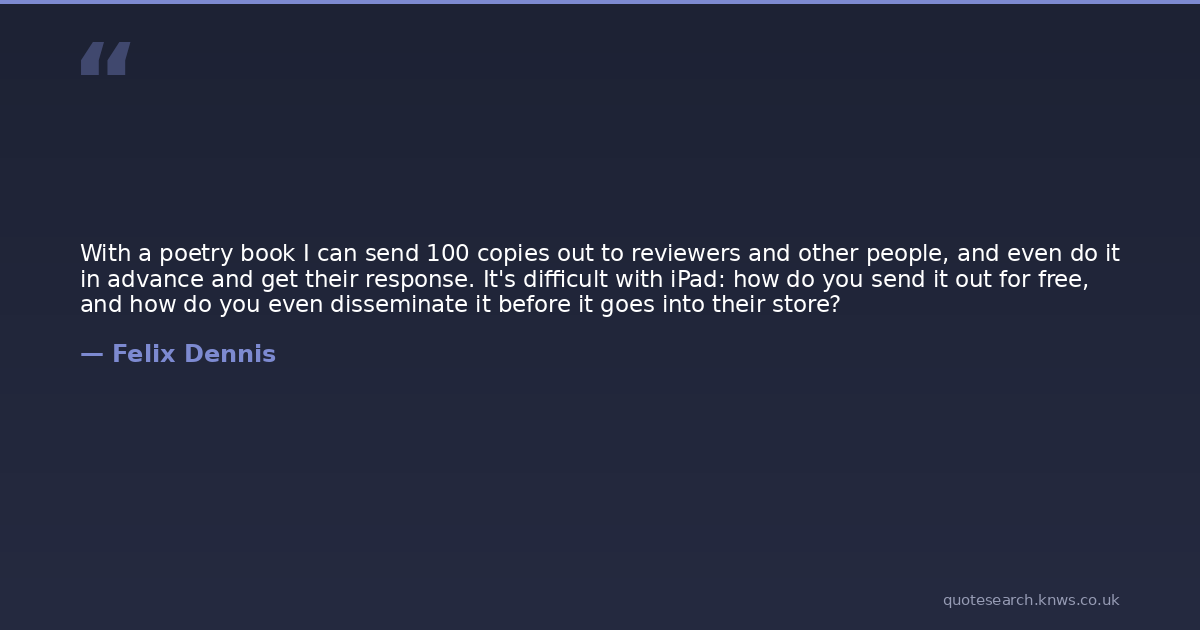 With a poetry book I can send 100 copies out to reviewers and other people, and even do it in advance and get their response. It's difficult with iPad: how do you send it out for free, and how do you even disseminate it before it goes into their store?