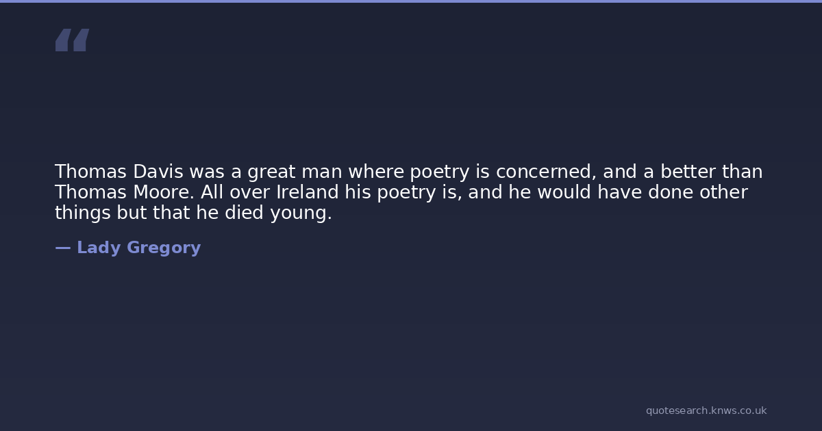 Thomas Davis was a great man where poetry is concerned, and a better than Thomas Moore. All over Ireland his poetry is, and he would have done other things but that he died young.
