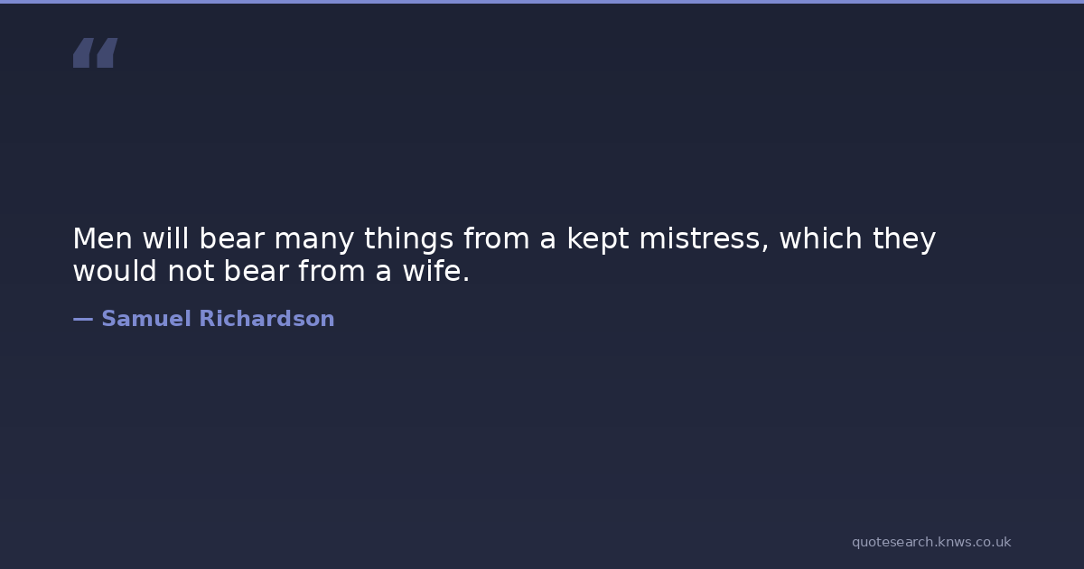 Men will bear many things from a kept mistress, which they would not bear from a wife.