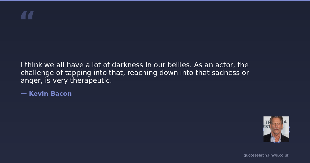 I think we all have a lot of darkness in our bellies. As an actor, the challenge of tapping into that, reaching down into that sadness or anger, is very therapeutic.