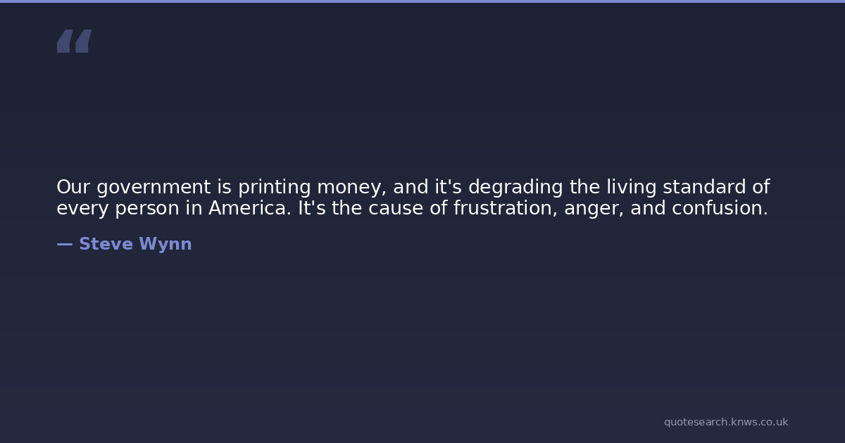 Our government is printing money, and it's degrading the living standard of every person in America. It's the cause of frustration, anger, and confusion.