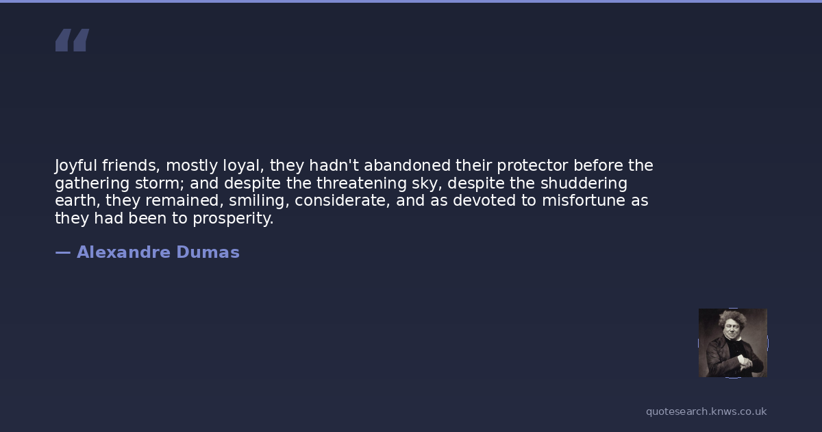 Joyful friends, mostly loyal, they hadn't abandoned their protector before the gathering storm; and despite the threatening sky, despite the shuddering earth, they remained, smiling, considerate, and as devoted to misfortune as they had been to prosperity.