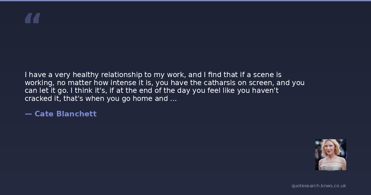 I have a very healthy relationship to my work, and I find that if a scene is working, no matter how intense it is, you have the catharsis on screen, and you can let it go. I think it's, if at the end of the day you feel like you haven't cracked it, that's when you go home and it's more difficult to switch off.
