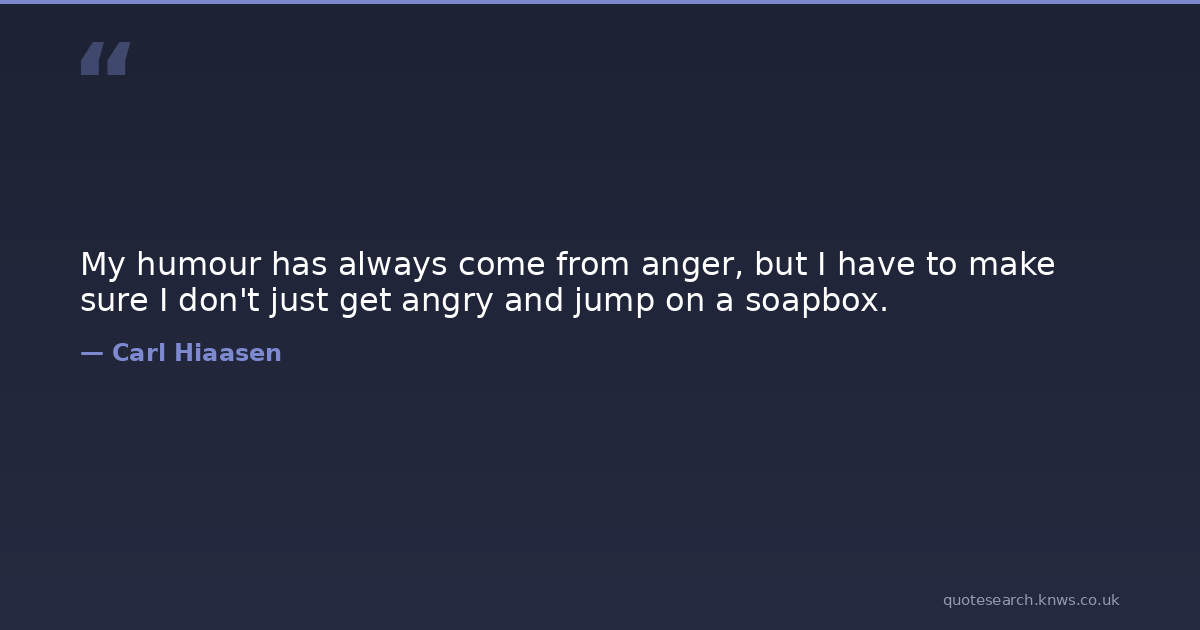 My humour has always come from anger, but I have to make sure I don't just get angry and jump on a soapbox.