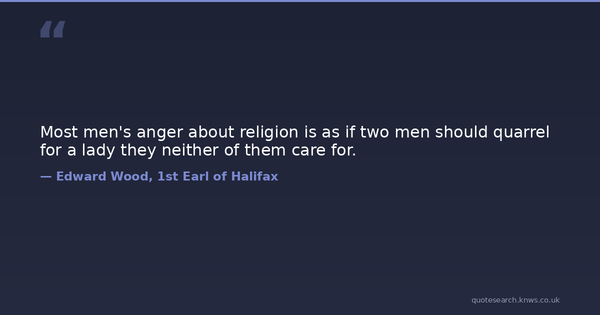 Most men's anger about religion is as if two men should quarrel for a lady they neither of them care for.