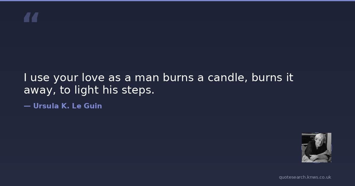 I use your love as a man burns a candle, burns it away, to light his steps.