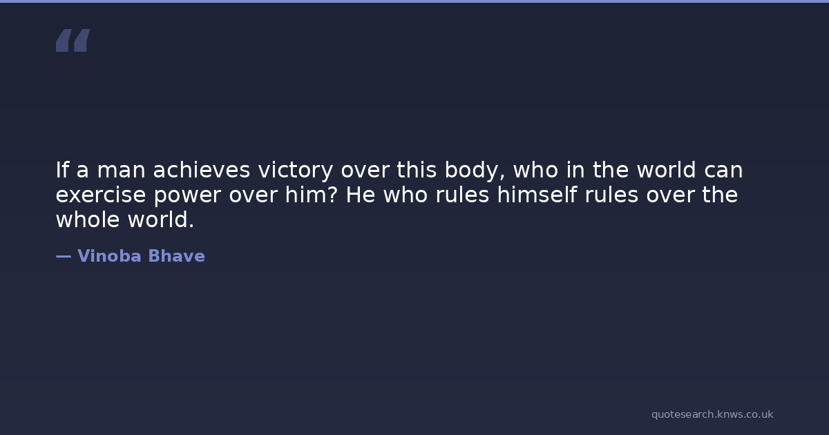 If a man achieves victory over this body, who in the world can exercise power over him? He who rules himself rules over the whole world.