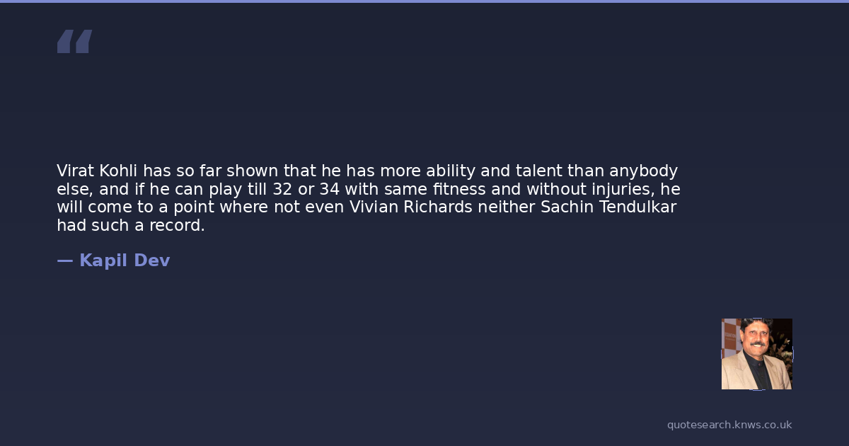 Virat Kohli has so far shown that he has more ability and talent than anybody else, and if he can play till 32 or 34 with same fitness and without injuries, he will come to a point where not even Vivian Richards neither Sachin Tendulkar had such a record.