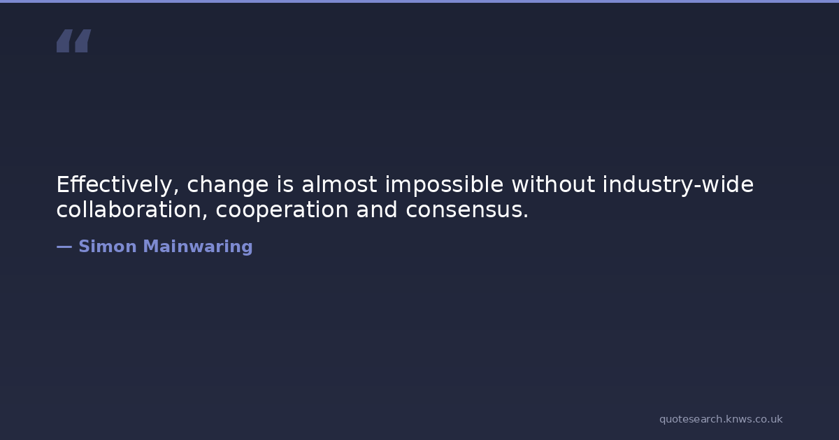Effectively, change is almost impossible without industry-wide collaboration, cooperation and consensus.
