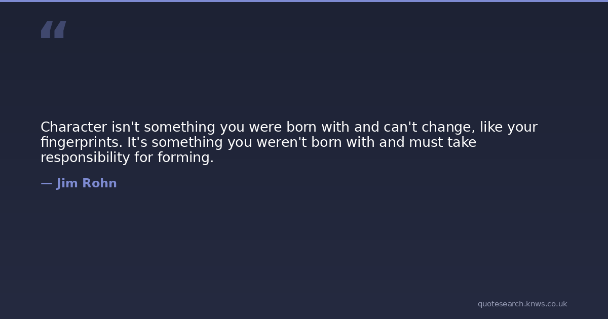 Character isn't something you were born with and can't change, like your fingerprints. It's something you weren't born with and must take responsibility for forming.
