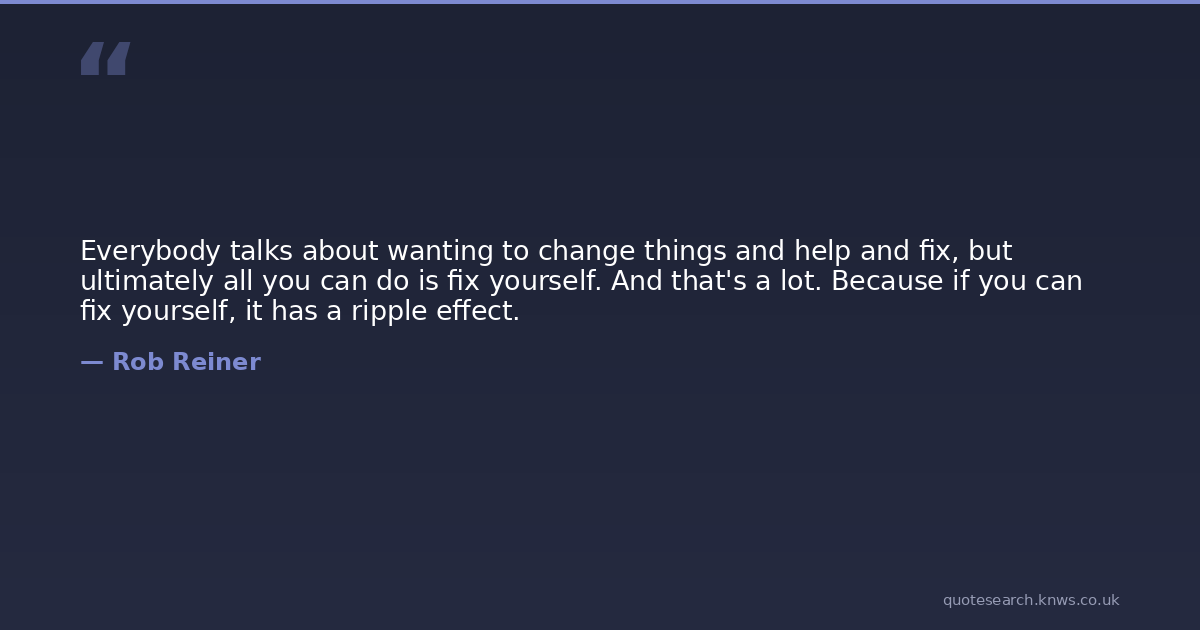 Everybody talks about wanting to change things and help and fix, but ultimately all you can do is fix yourself. And that's a lot. Because if you can fix yourself, it has a ripple effect.
