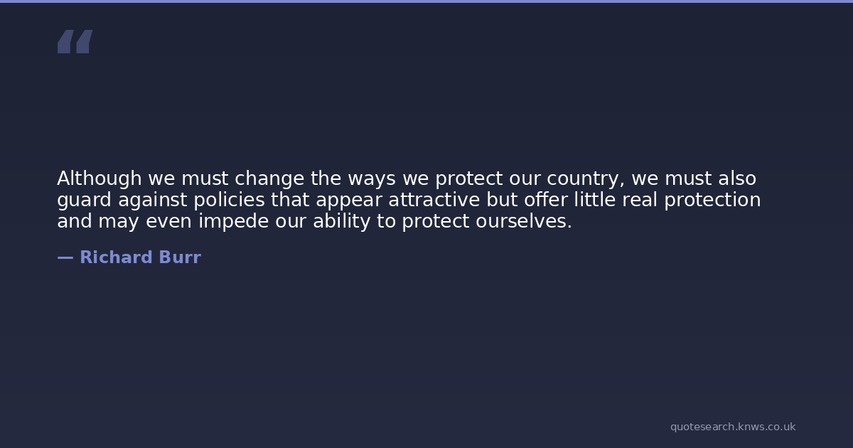 Although we must change the ways we protect our country, we must also guard against policies that appear attractive but offer little real protection and may even impede our ability to protect ourselves.