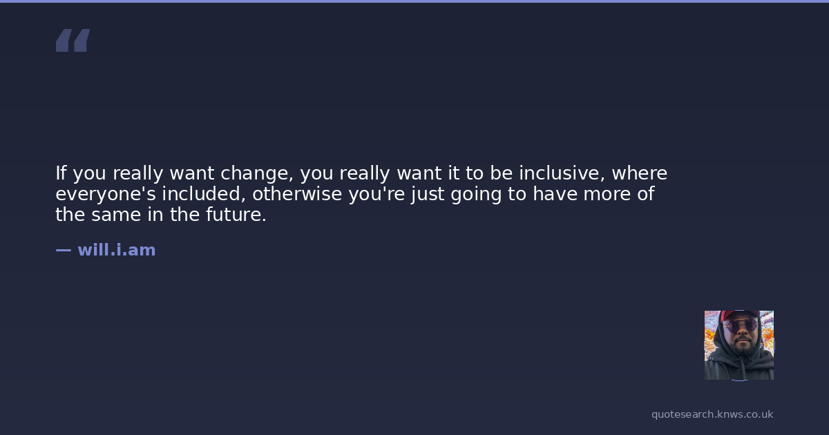 If you really want change, you really want it to be inclusive, where everyone's included, otherwise you're just going to have more of the same in the future.