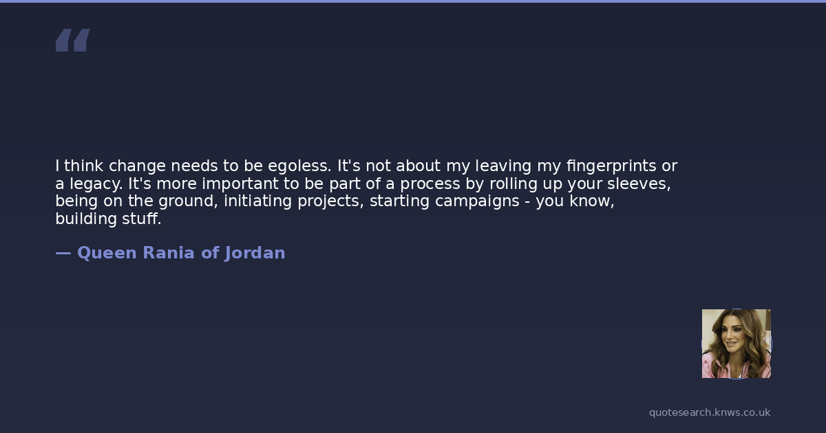 I think change needs to be egoless. It's not about my leaving my fingerprints or a legacy. It's more important to be part of a process by rolling up your sleeves, being on the ground, initiating projects, starting campaigns - you know, building stuff.