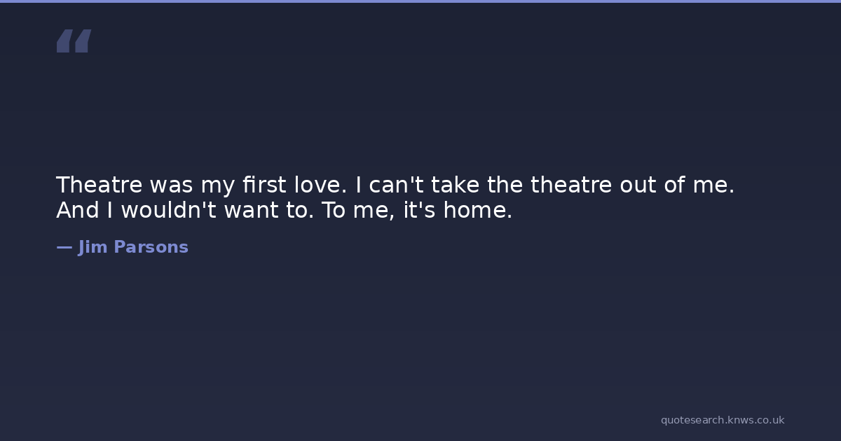Theatre was my first love. I can't take the theatre out of me. And I wouldn't want to. To me, it's home.