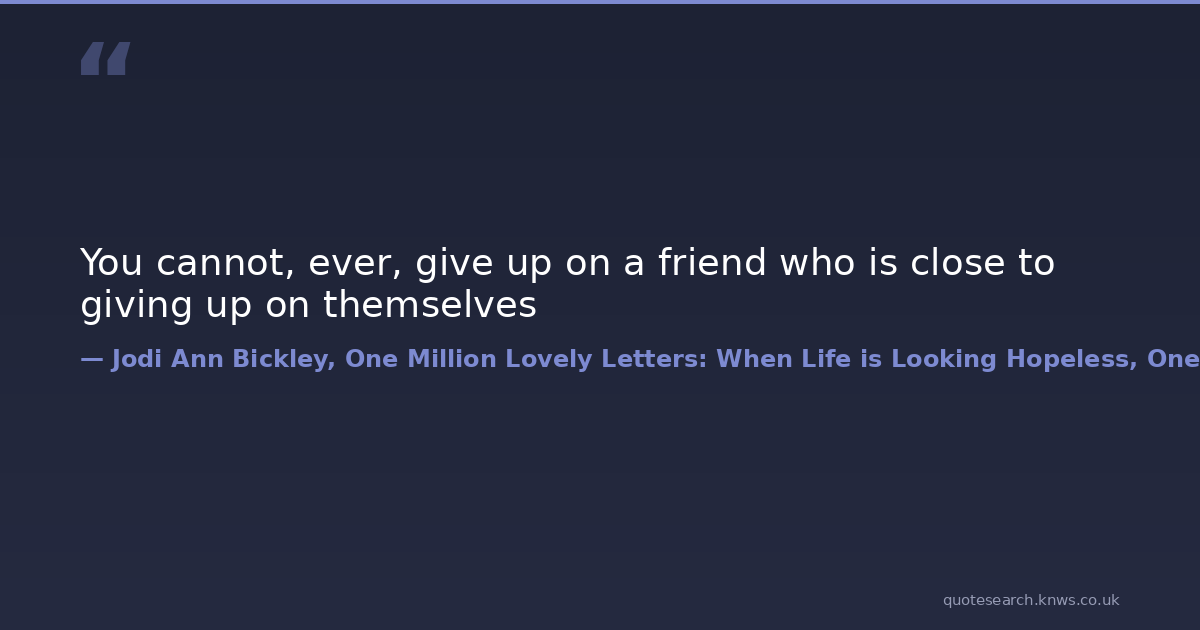 You cannot, ever, give up on a friend who is close to giving up on themselves