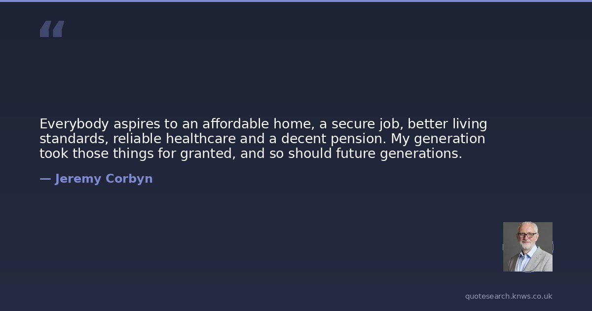 Everybody aspires to an affordable home, a secure job, better living standards, reliable healthcare and a decent pension. My generation took those things for granted, and so should future generations.