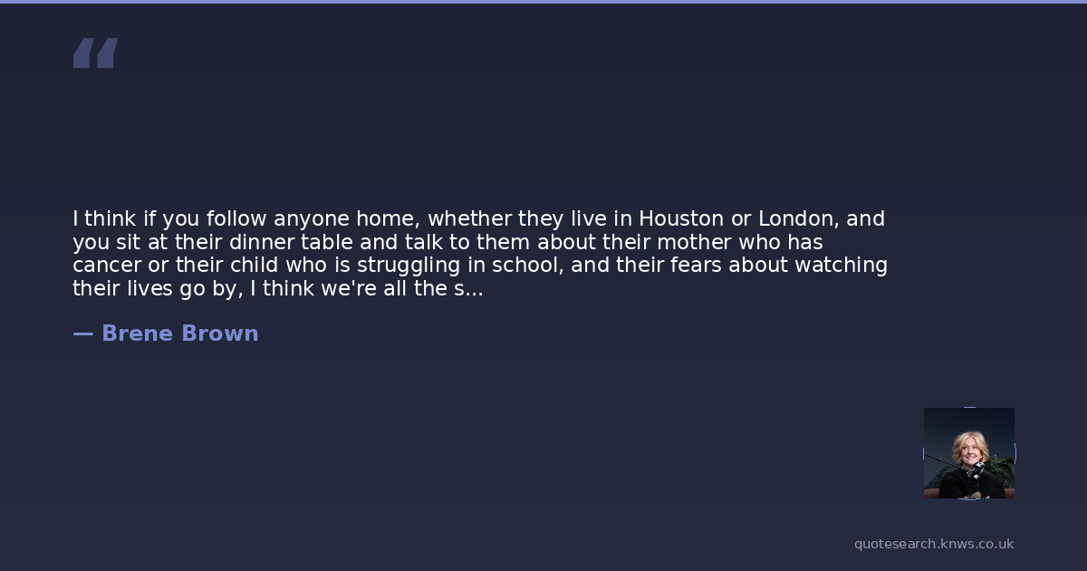 I think if you follow anyone home, whether they live in Houston or London, and you sit at their dinner table and talk to them about their mother who has cancer or their child who is struggling in school, and their fears about watching their lives go by, I think we're all the same.