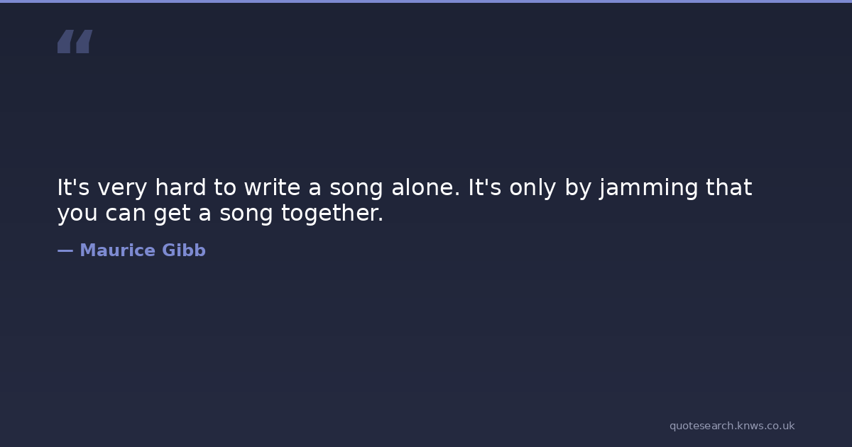 It's very hard to write a song alone. It's only by jamming that you can get a song together. Together Song You Download Image Share on X Share on Facebook Copy Link
