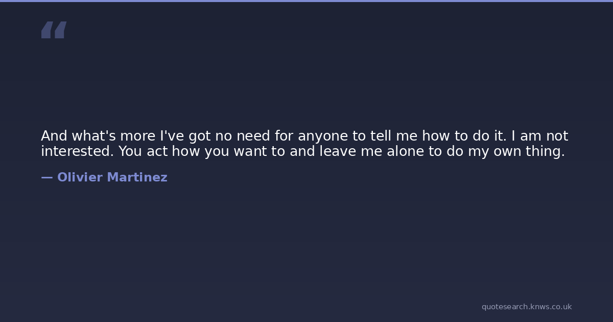 And what's more I've got no need for anyone to tell me how to do it. I am not interested. You act how you want to and leave me alone to do my own thing.