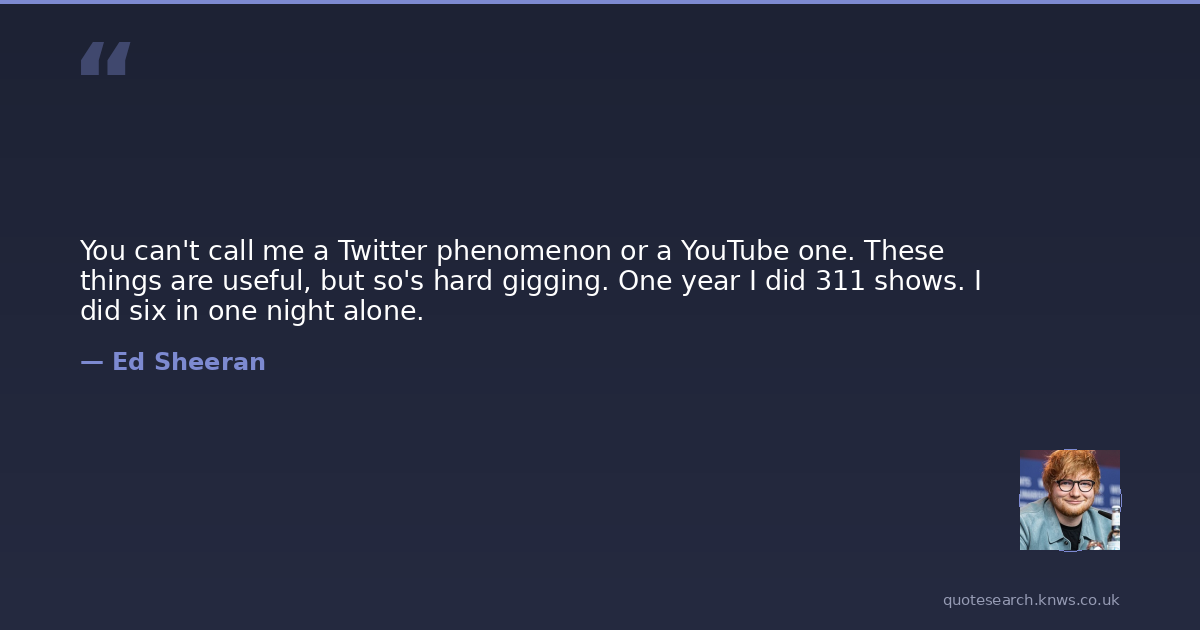 You can't call me a Twitter phenomenon or a YouTube one. These things are useful, but so's hard gigging. One year I did 311 shows. I did six in one night alone.