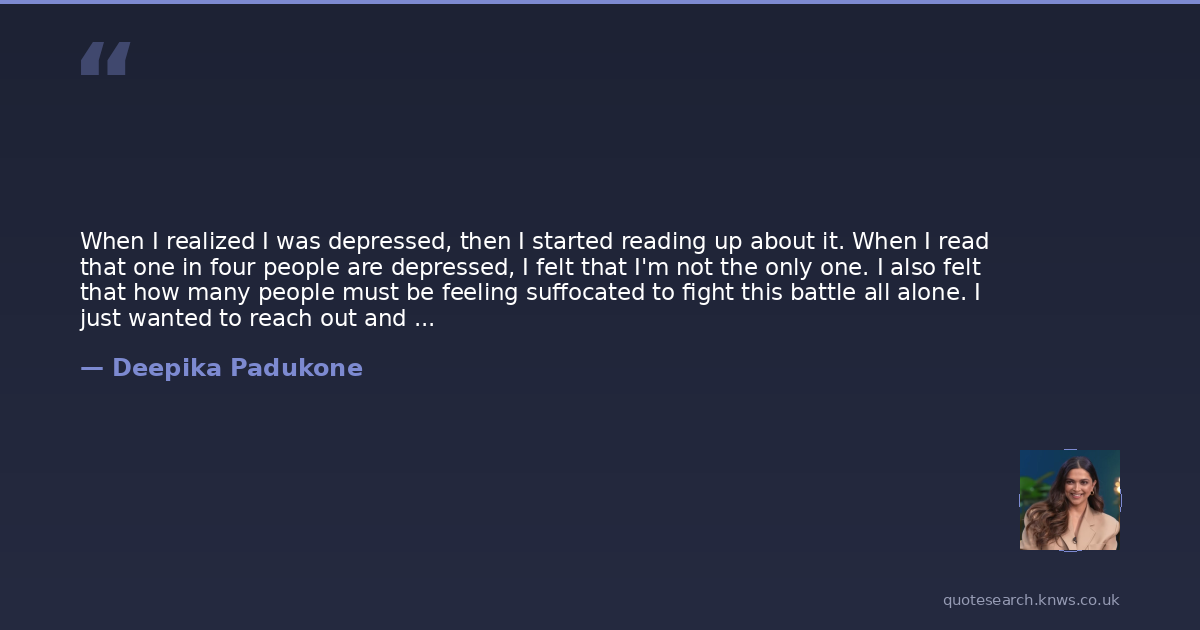 When I realized I was depressed, then I started reading up about it. When I read that one in four people are depressed, I felt that I'm not the only one. I also felt that how many people must be feeling suffocated to fight this battle all alone. I just wanted to reach out and tell them that even I'm like you, and it's okay if you feel like that.