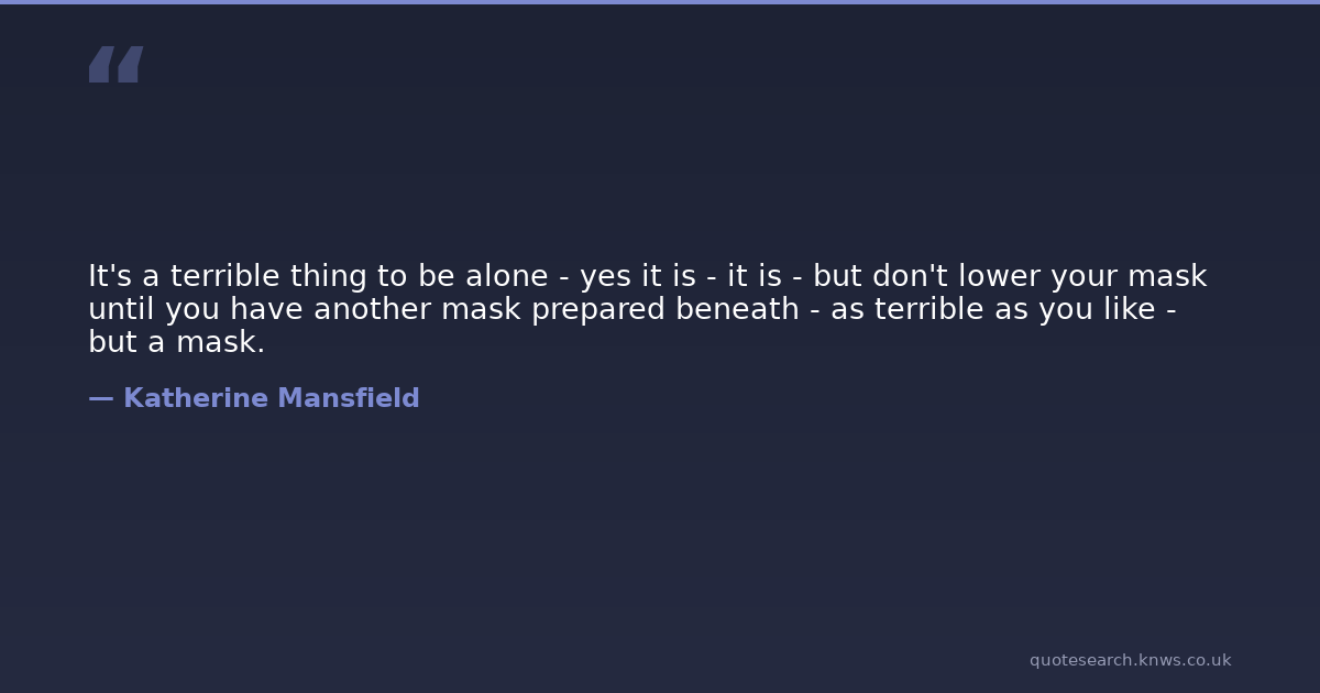 It's a terrible thing to be alone - yes it is - it is - but don't lower your mask until you have another mask prepared beneath - as terrible as you like - but a mask.
