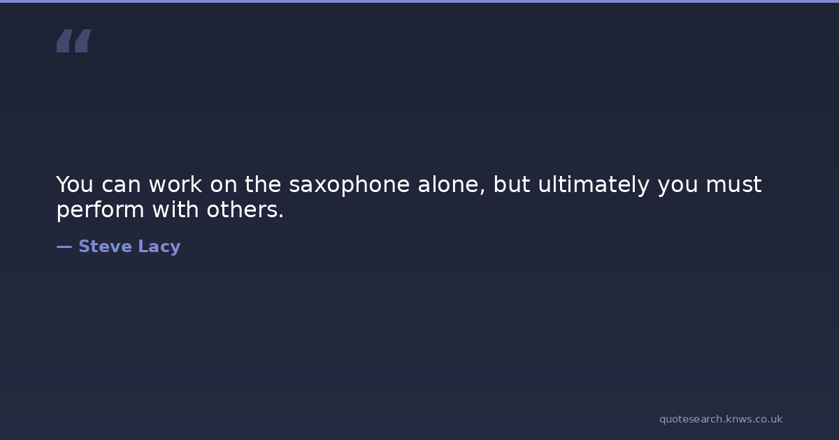 You can work on the saxophone alone, but ultimately you must perform with others.