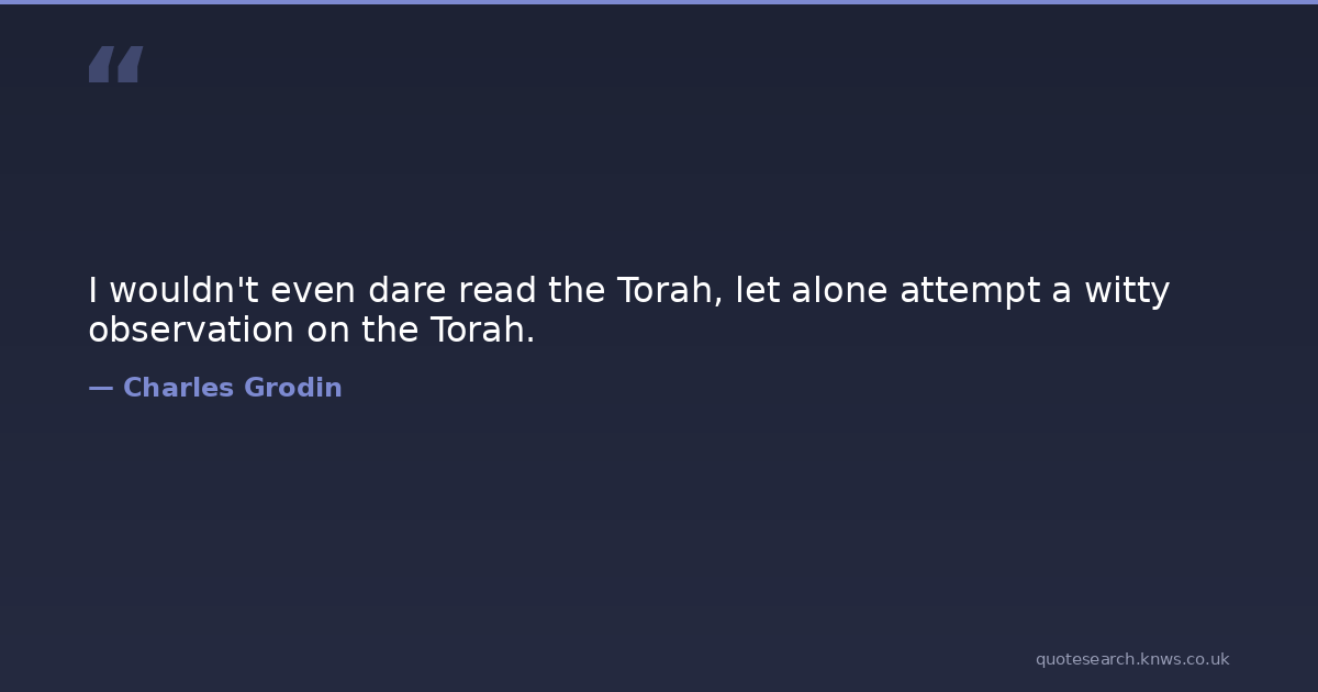 I wouldn't even dare read the Torah, let alone attempt a witty observation on the Torah. Witty Observation Dare Download Image Share on X Share on Facebook Copy Link