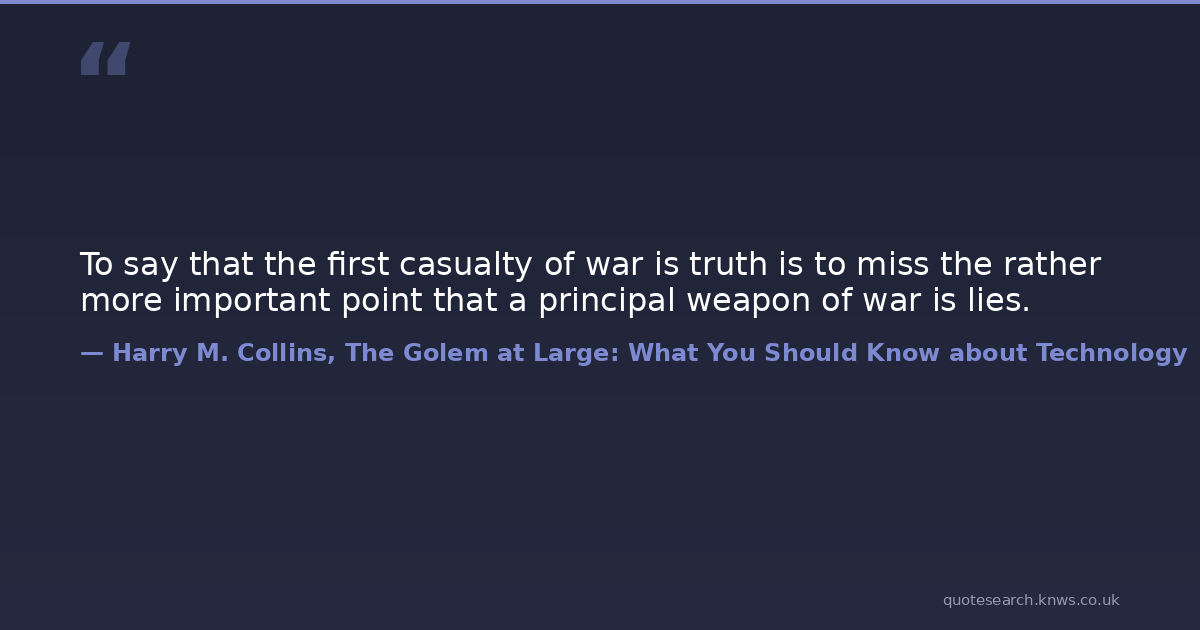 To say that the first casualty of war is truth is to miss the rather more important point that a principal weapon of war is lies.
