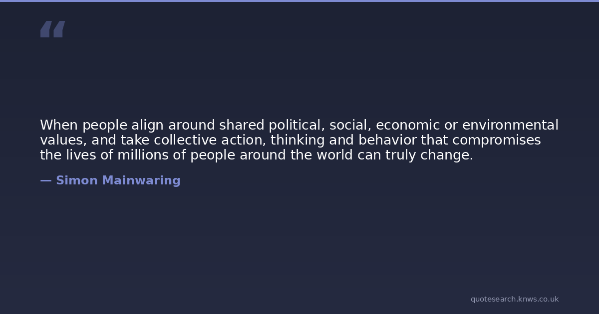 When people align around shared political, social, economic or environmental values, and take collective action, thinking and behavior that compromises the lives of millions of people around the world can truly change.