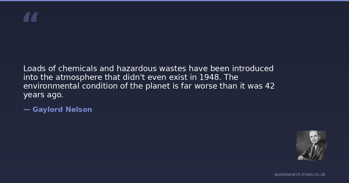 Loads of chemicals and hazardous wastes have been introduced into the atmosphere that didn't even exist in 1948. The environmental condition of the planet is far worse than it was 42 years ago.