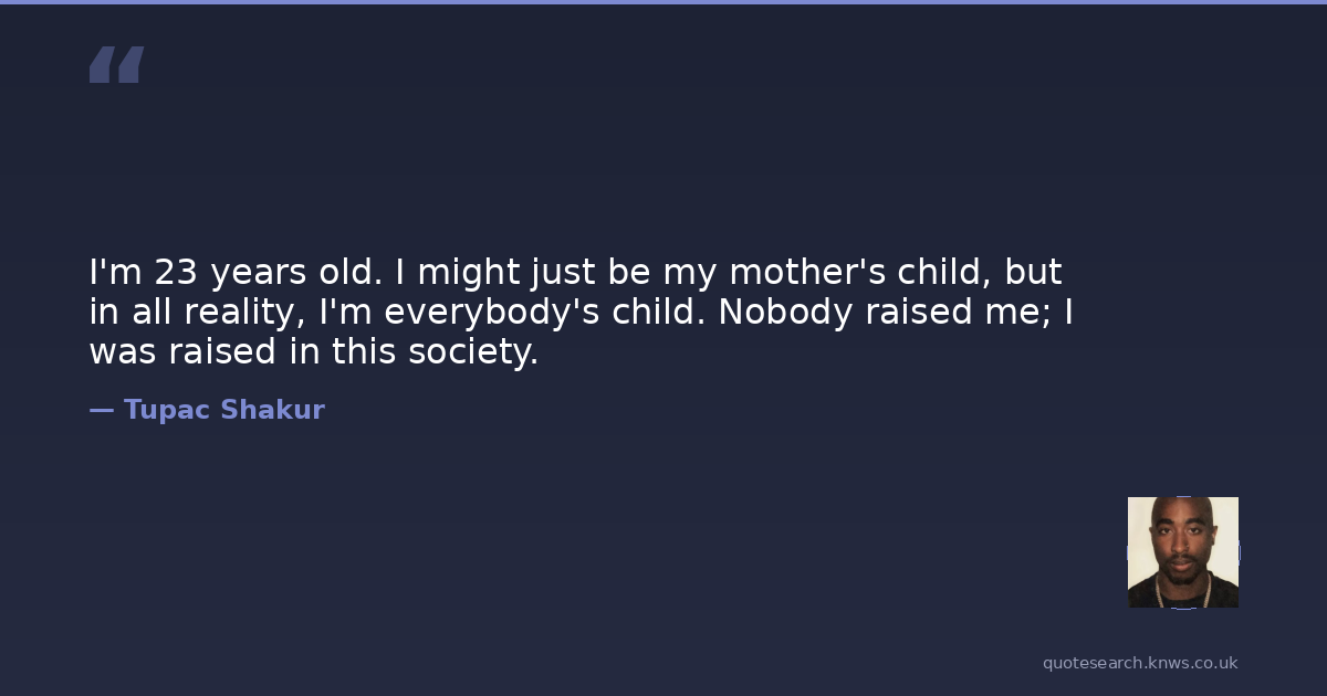 I'm 23 years old. I might just be my mother's child, but in all reality, I'm everybody's child. Nobody raised me; I was raised in this society.