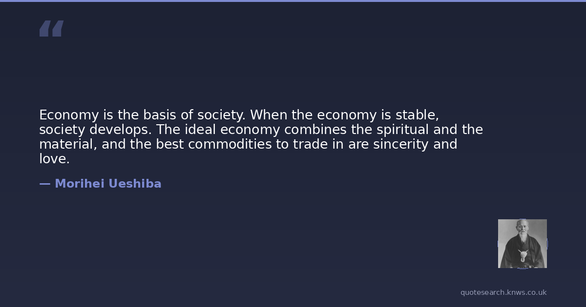 Economy is the basis of society. When the economy is stable, society develops. The ideal economy combines the spiritual and the material, and the best commodities to trade in are sincerity and love.
