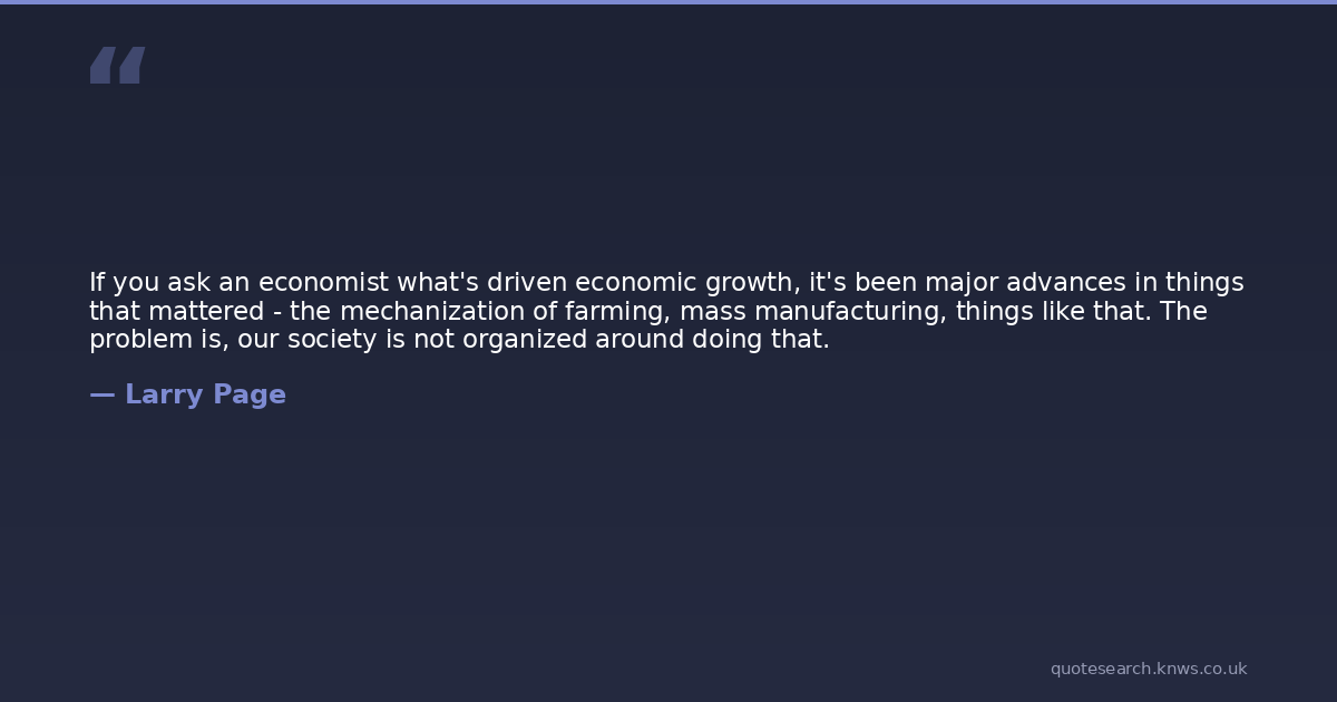 If you ask an economist what's driven economic growth, it's been major advances in things that mattered - the mechanization of farming, mass manufacturing, things like that. The problem is, our society is not organized around doing that.